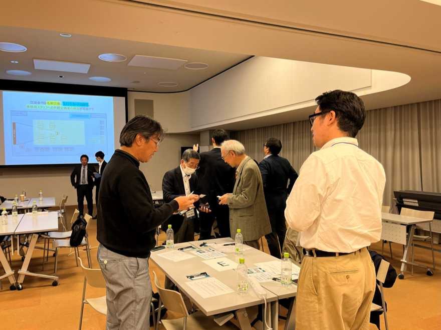 ワークショップ終了後には交流会を実施し、参加者の皆様がワークショップ内容をもとにディスカッションを行ったり、名刺交換や事業内容の紹介を行っていました。