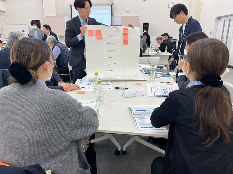 各グループにはファシリテーターが付き、参加者はグループワークで与えられた課題を繰り返し分析することで、根本課題を導き出しました。その後、解決策を検討・議論していただきました。参加者は、課題の分析を通して、立場や職種が異なる方での着眼点の違いを実感し、ご自身にはない発想法や視点に気づきを得ておられました。