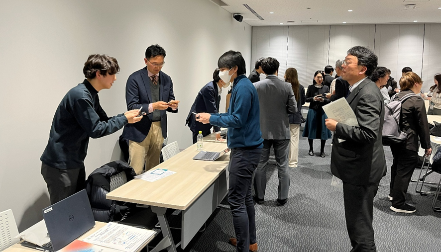最後に、登壇者と参加者、さらに参加者同士が交流する場として、交流会を実施しました。登壇した5者ごとにブースを設け、参加者はそれぞれの登壇者と直接対話し、今後の共創に向けた具体的な意見交換を行いました。