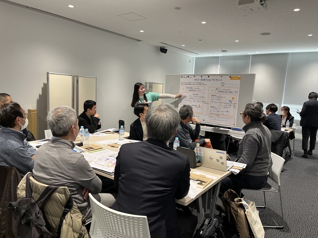 このセッションでは、自社の製品・サービスと顧客の課題との関係性を可視化するフレームワーク「バリュープロポジションキャンバス」を使用し、参加企業同士の議論を交えながら、顧客の課題(利得・悩み)と顧客への提供価値の整理方法を習得いただきました。