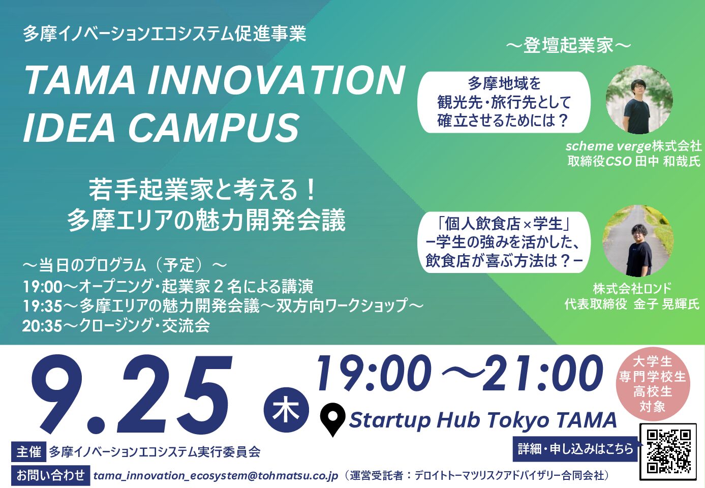 【学生イベント】「TAMA INNOVATION IDEA CAMPUS~若手起業家と考える!多摩エリアの魅力開発会議~」開催報告
