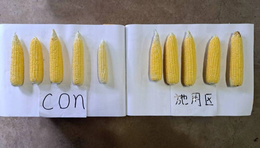 伊藤:今、進めているのが、MCMという海水由来成分をベースにした無機塩類溶液の活用です。簡単に言うと、植物に必要なミネラル成分を含んだ水で、農業の現場で使える技術として育てています。使い方は葉への散布で、トウモロコシでは散布の有無で茎の太さなど成長の違いが確認できました。年に数回の散布でよく、設備を大きく変えずに導入できる点も現場向きだと思っています。