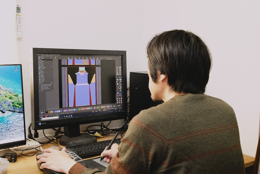 - ホールガーメントは、機械で編むとはいえ、実際にはパソコンでの設計も重要になるんですよね。