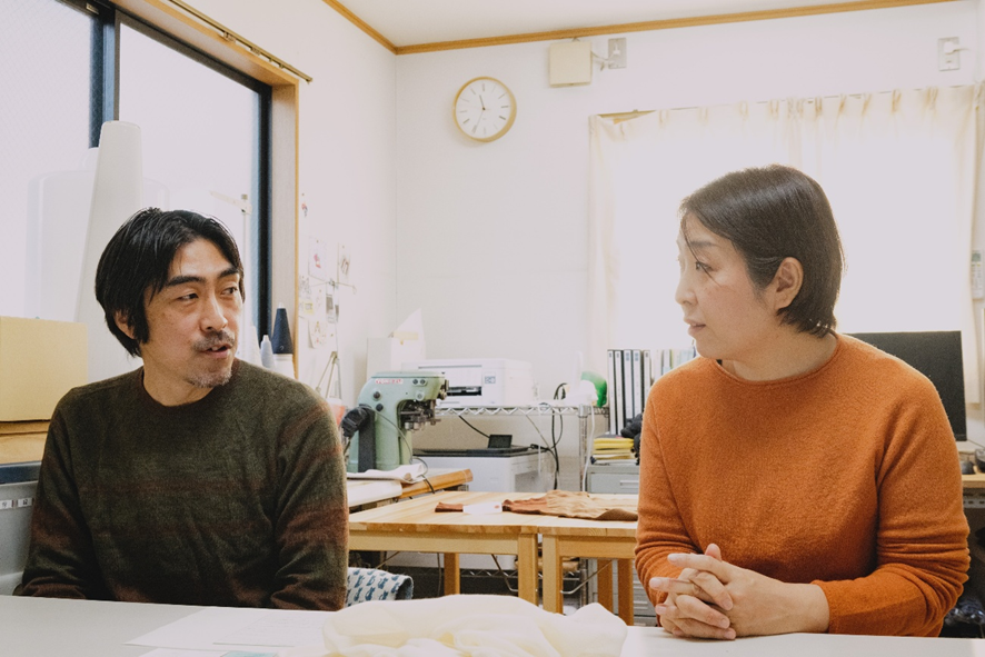 理恵:私はその後の工程ですね。糸始末、洗い、仕上げなど、いわゆる後工程を担当しています。アルバイトの方にも入ってもらいながら進めています。以前は父が決めて、下が動く形が中心でしたが、今は二人で相談して決めることが増えました。社長、専務というより、並んで考える感じです。